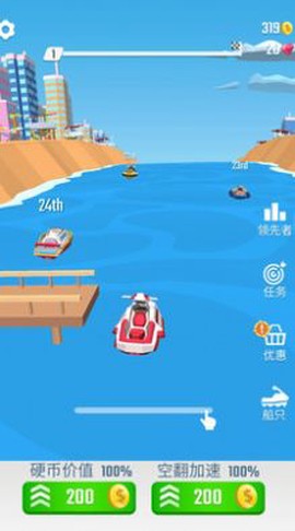 3、游戏的操作非常简单流畅,轻松的控制让每位玩家都能迅速上手。同时,通过不断升级摩托艇的性能,你可以轻松超越其他的挑战者。