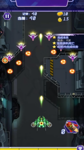 2. 要在战斗中生存下来,玩家需要灵活地滑动屏幕,躲避敌人的攻击;关键时刻再利用核弹清屏技能,扭转战局。