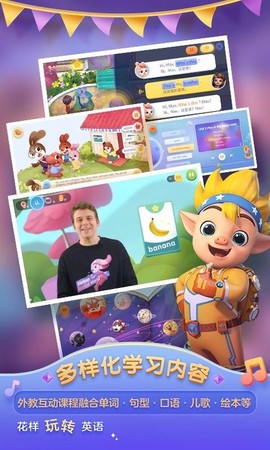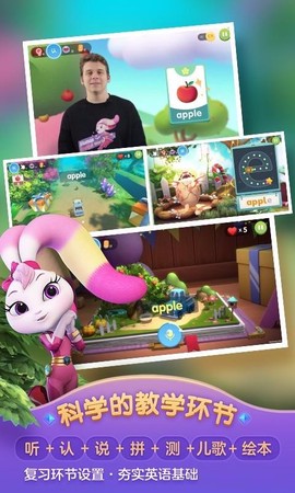 2、游戏环节的设置让学习变成了一种乐趣,孩子们在轻松的状态下能够强化记忆,内容多样的组合,包括单词、句型和可爱的儿歌,让学习的过程充满乐趣。
