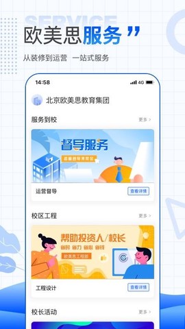 3、切换到服务版块,不管是校区装修还是运营卡点,都能找到对口服务,一站式解决。